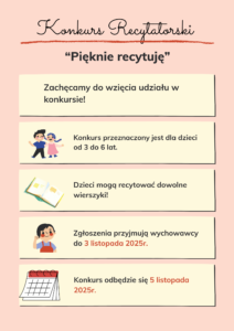 - Zgłoszenia należy dostarczyć do 03.11.2025r. na karcie zgłoszenia dostępnej u wychowawców grup.